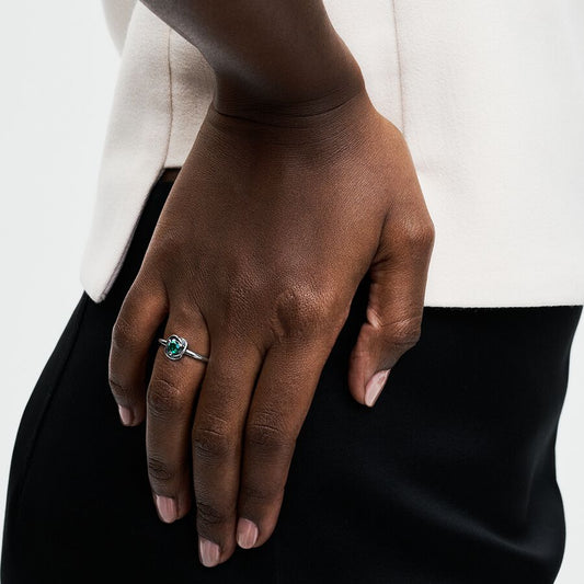 Anel com Esmalte Preto e Pedras