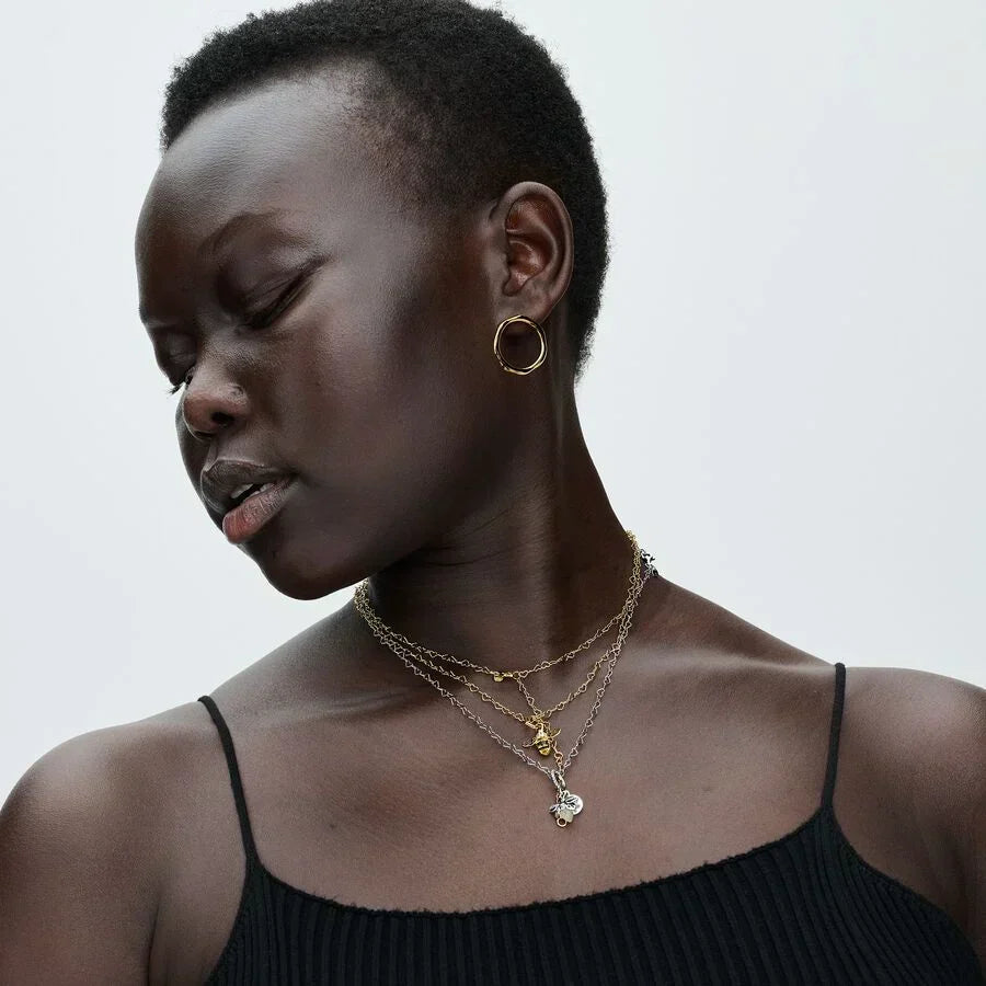 Opte por uma elegância delicada com o Colar Corações Entrelaçados. Pequenos corações ligados em prata formam um colar de corrente ajustável. Este design assume uma forma clássica, reinventando-a sob a forma de um padrão reduzido e repetido. Doce e sofisticado em partes iguais, este colar delicado em forma de coração de prata tornar-se-á um componente central de qualquer coleção de joalharia. Use com um máximo de 1-2 contas/contas pendente.